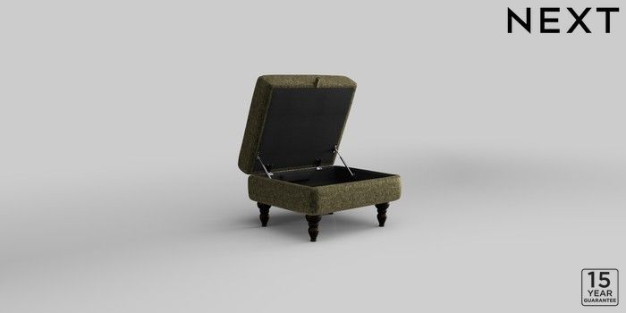 7.2.10 Mallory Storage Footstool Plush Chenille Moss Green High Turned - Dark | Made Click here to use our website with more accessibility support, for example screen readers