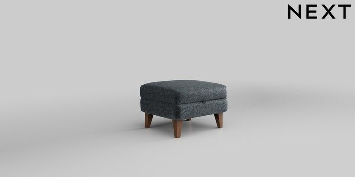 7.2.10 Mallory Storage Footstool Plush Chenille Slate Blue High Turned - Dark | Made Click here to use our website with more accessibility support, for example screen readers