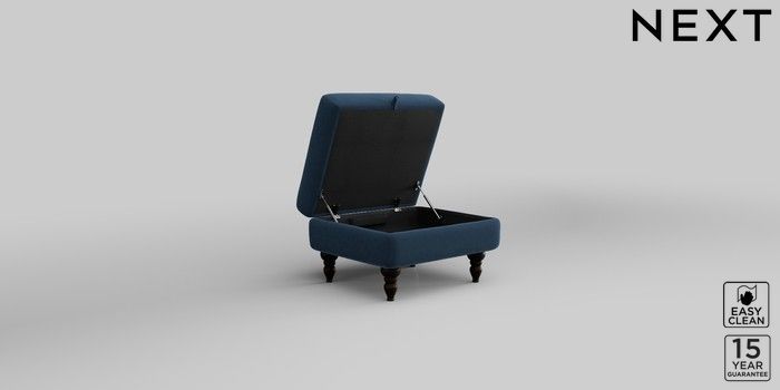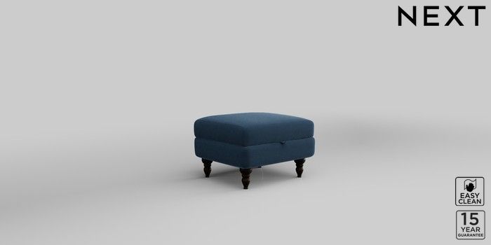 7.2.10 Mallory Storage Footstool Plush Velvet Easy Clean Airforce Blue High Turned - Dark | Made Click here to use our website with more accessibility support, for example screen readers