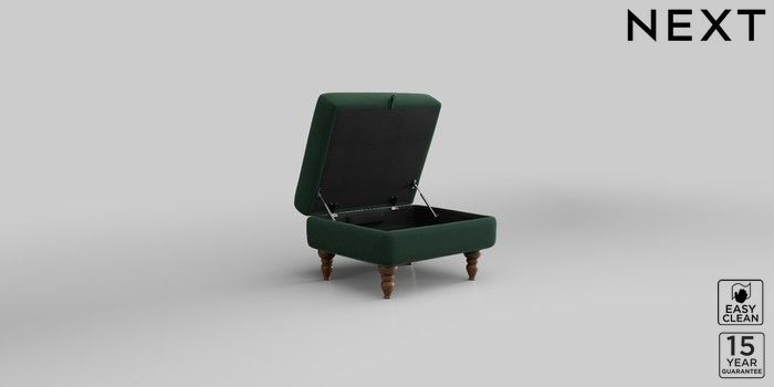 7.2.10 Mallory Storage Footstool Plush Velvet Easy Clean Bottle Green High Turned - Mid | Made Click here to use our website with more accessibility support, for example screen readers