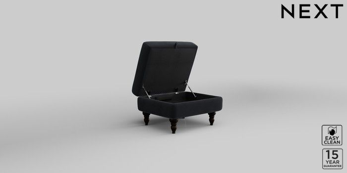 7.2.10 Mallory Storage Footstool Plush Velvet Easy Clean Charcoal Grey High Turned - Dark | Made Click here to use our website with more accessibility support, for example screen readers