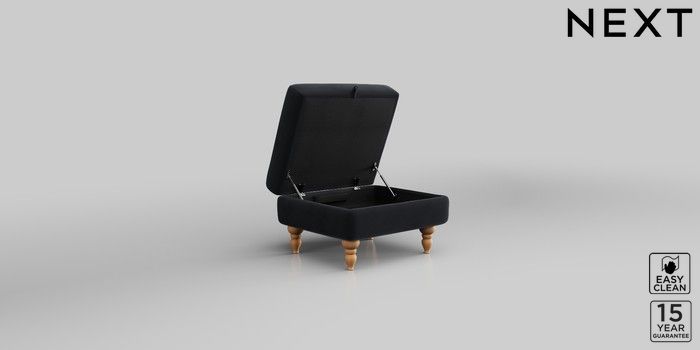 7.2.10 Mallory Storage Footstool Plush Velvet Easy Clean Charcoal Grey High Turned - Light | Made Click here to use our website with more accessibility support, for example screen readers