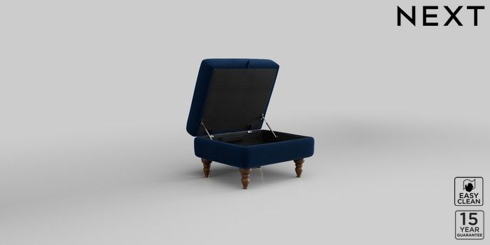 7.2.10 Mallory Storage Footstool Plush Velvet Easy Clean Navy Blue High Turned - Mid | Made Click here to use our website with more accessibility support, for example screen readers
