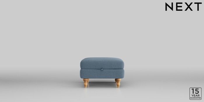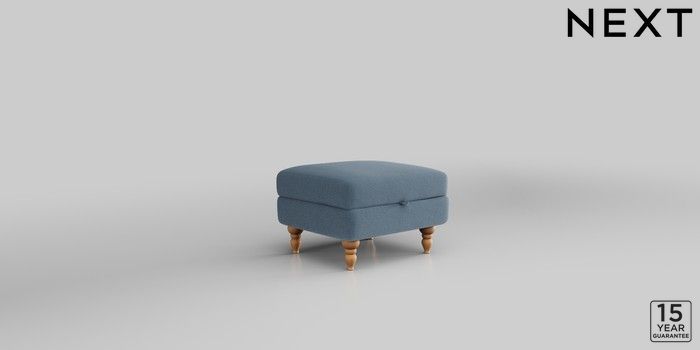 7.2.10 Mallory Storage Footstool Relaxed Linen Look Mid Blue High Turned - Light | Made Click here to use our website with more accessibility support, for example screen readers