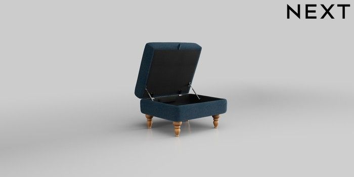 7.2.10 Mallory Storage Footstool Ripple Chenille Dark Blue High Turned - Light | Made Click here to use our website with more accessibility support, for example screen readers