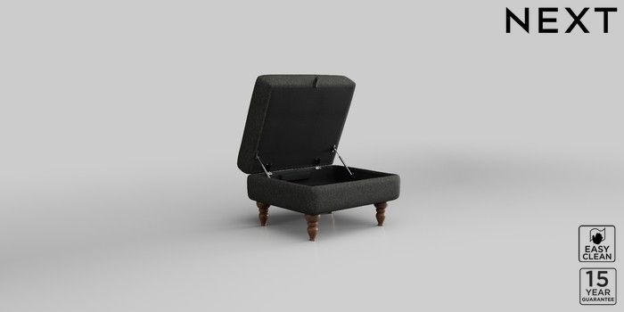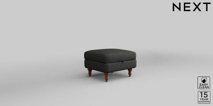 7.2.10 Mallory Storage Footstool Tweedy Blend Easy Clean Charcoal Grey High Turned - Mid | Made Click here to use our website with more accessibility support, for example screen readers