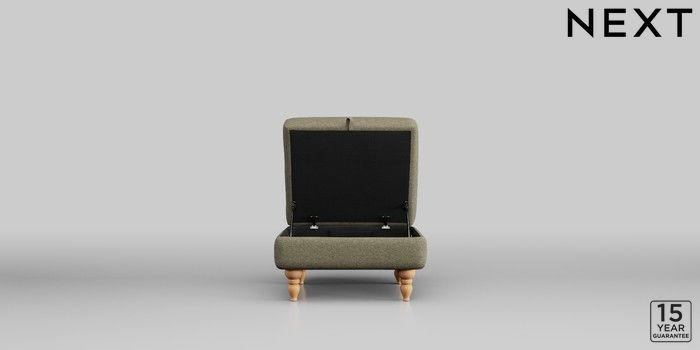 7.2.10 Mallory Storage Footstool Tweedy Chenille Mid Moss Green High Turned - Light | Made Click here to use our website with more accessibility support, for example screen readers
