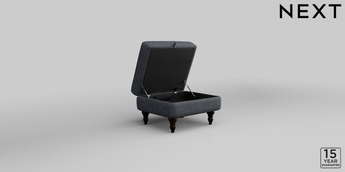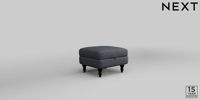 7.2.10 Mallory Storage Footstool Tweedy Chenille Navy Blue High Turned - Dark | Made Click here to use our website with more accessibility support, for example screen readers