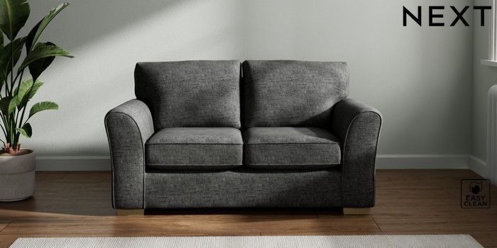 7.2.10 Michigan II 2 Seater Small Sofa Boucle Weave Easy Clean Charcoal Grey Slim Block - Light | Made Click here to use our website with more accessibility support, for example screen readers