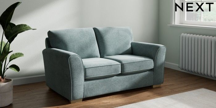 7.2.10 Michigan II 2 Seater Small Sofa Chunky Chenille Light Teal Green Slim Block - Light | Made Click here to use our website with more accessibility support, for example screen readers