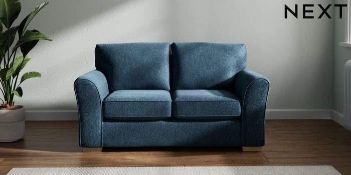 7.2.10 Michigan II 2 Seater Small Sofa Cotswold Chenille Dark Blue Slim Block - Light | Made Click here to use our website with more accessibility support, for example screen readers