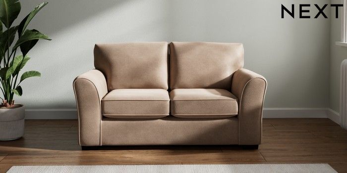 7.2.10 Michigan II 2 Seater Small Sofa Luxe Chenille Mid Natural Slim Block - Dark | Made Click here to use our website with more accessibility support, for example screen readers