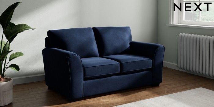7.2.10 Michigan II 2 Seater Small Sofa Luxe Chenille Navy Blue Slim Block - Dark | Made Click here to use our website with more accessibility support, for example screen readers