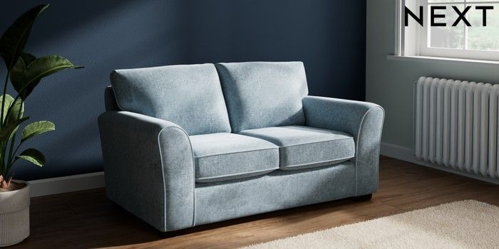 7.2.10 Michigan II 2 Seater Small Sofa Plush Chenille Light Blue Slim Block - Dark | Made Click here to use our website with more accessibility support, for example screen readers