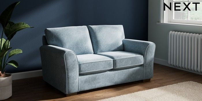 7.2.10 Michigan II 2 Seater Small Sofa Plush Chenille Light Blue Slim Block - Mid | Made Click here to use our website with more accessibility support, for example screen readers