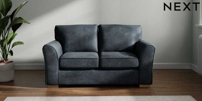 7.2.10 Michigan II 2 Seater Small Sofa Plush Chenille Slate Blue Slim Block - Light | Made Click here to use our website with more accessibility support, for example screen readers