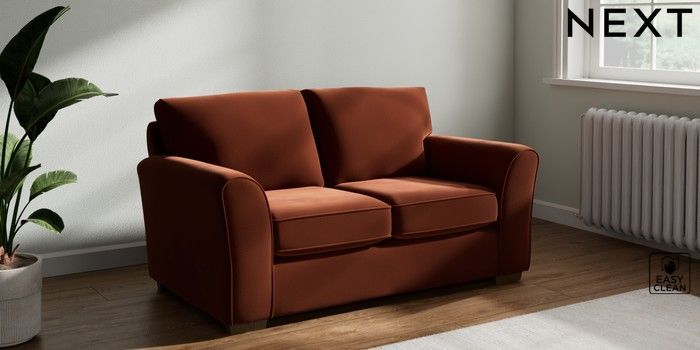 7.2.10 Michigan II 2 Seater Small Sofa Plush Velvet Easy Clean Ginger Orange Slim Block - Mid | Made Click here to use our website with more accessibility support, for example screen readers