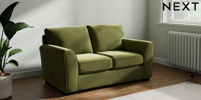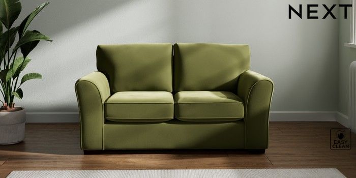 7.2.10 Michigan II 2 Seater Small Sofa Plush Velvet Easy Clean Mid Olive Green Slim Block - Dark | Made Click here to use our website with more accessibility support, for example screen readers
