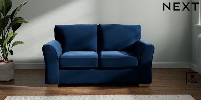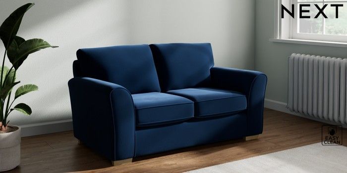 7.2.10 Michigan II 2 Seater Small Sofa Plush Velvet Easy Clean Navy Blue Slim Block - Light | Made Click here to use our website with more accessibility support, for example screen readers
