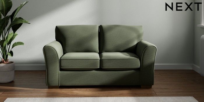 7.2.10 Michigan II 2 Seater Small Sofa Relaxed Linen Look Dark Green Slim Block - Mid | Made Click here to use our website with more accessibility support, for example screen readers