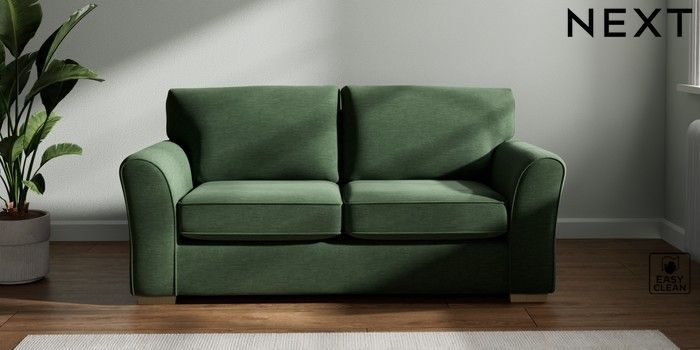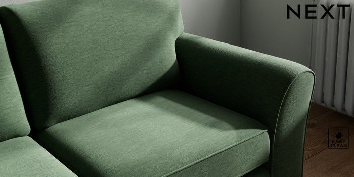 7.2.10 Michigan II 2 Seater Sofa Fine Chenille Easy Clean Mid Khaki Green Slim Block - Light | Made Click here to use our website with more accessibility support, for example screen readers