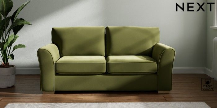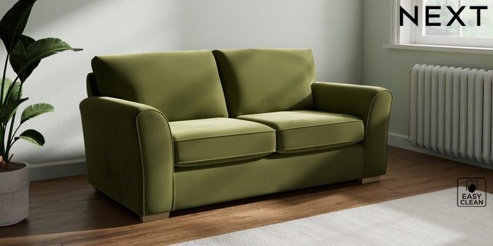 7.2.10 Michigan II 2 Seater Sofa Plush Velvet Easy Clean Mid Olive Green Slim Block - Light | Made Click here to use our website with more accessibility support, for example screen readers