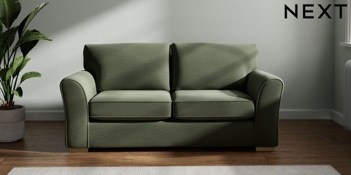 7.2.10 Michigan II 2 Seater Sofa Relaxed Linen Look Dark Green Slim Block - Light | Made Click here to use our website with more accessibility support, for example screen readers