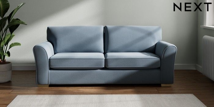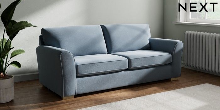 7.2.10 Michigan II 3 Seater Small Sofa Relaxed Linen Look Mid Blue Slim Block - Light | Made Click here to use our website with more accessibility support, for example screen readers
