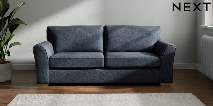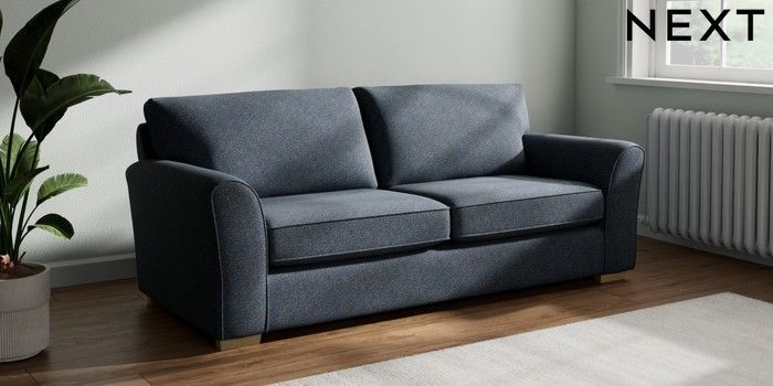 7.2.10 Michigan II 3 Seater Small Sofa Tweedy Chenille Navy Blue Slim Block - Light | Made Click here to use our website with more accessibility support, for example screen readers