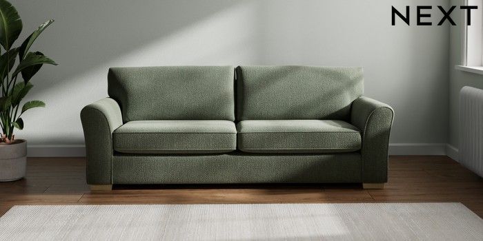 7.2.10 Michigan II 3 Seater Sofa Chunky Texture Mid Forest Green Slim Block - Light | Made Click here to use our website with more accessibility support, for example screen readers