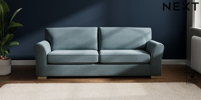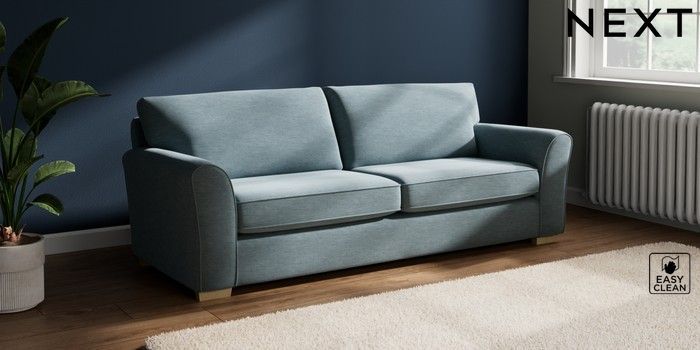 7.2.10 Michigan II 3 Seater Sofa Fine Chenille Easy Clean Mid Blue Slim Block - Light | Made Click here to use our website with more accessibility support, for example screen readers