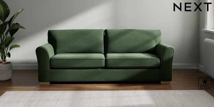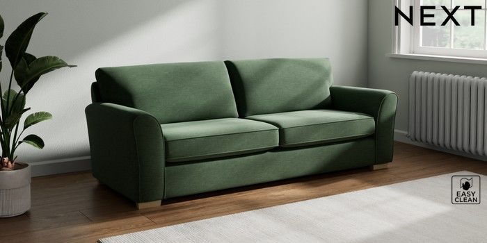 7.2.10 Michigan II 3 Seater Sofa Fine Chenille Easy Clean Mid Khaki Green Slim Block - Light | Made Click here to use our website with more accessibility support, for example screen readers