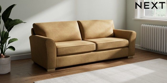 7.2.10 Michigan II 3 Seater Sofa Luxe Chenille Honey Yellow Slim Block - Light | Made Click here to use our website with more accessibility support, for example screen readers