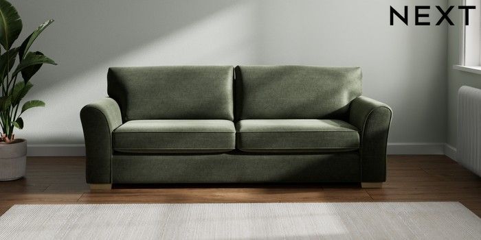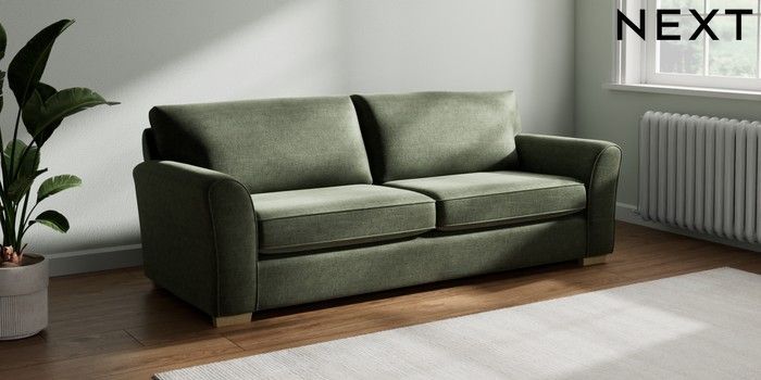 7.2.10 Michigan II 3 Seater Sofa Luxe Chenille Mid Green Slim Block - Light | Made Click here to use our website with more accessibility support, for example screen readers