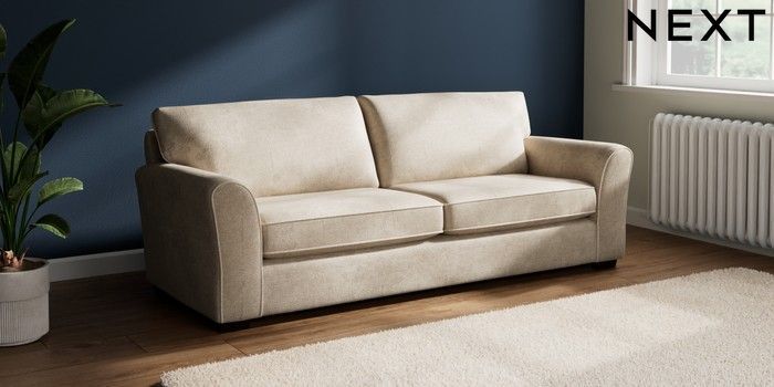 7.2.10 Michigan II 3 Seater Sofa Plush Chenille Light Natural Slim Block - Dark | Made Click here to use our website with more accessibility support, for example screen readers