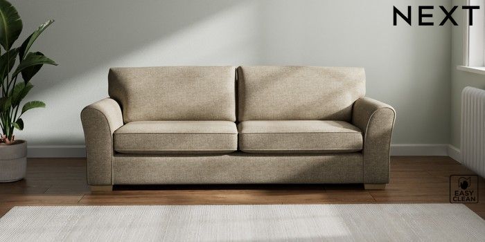 7.2.10 Michigan II 3 Seater Sofa Woven Chenille Easy Clean Mid Natural Slim Block - Light | Made Click here to use our website with more accessibility support, for example screen readers