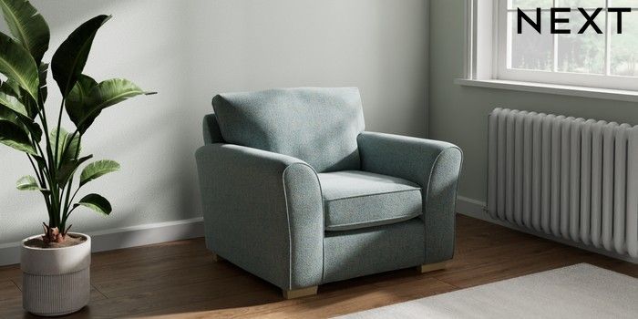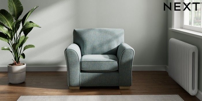 7.2.10 Michigan II Armchair Chunky Marl Mid Blue Slim Block - Light | Made Click here to use our website with more accessibility support, for example screen readers