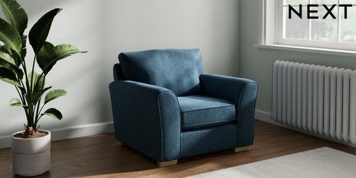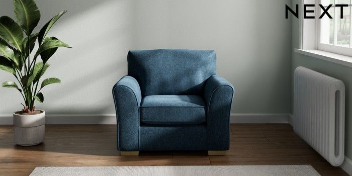 7.2.10 Michigan II Armchair Cotswold Chenille Dark Blue Slim Block - Light | Made Click here to use our website with more accessibility support, for example screen readers