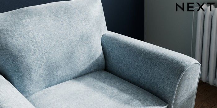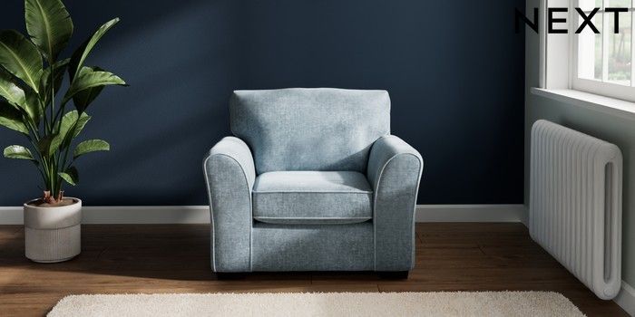 7.2.10 Michigan II Armchair Plush Chenille Light Blue Slim Block - Dark | Made Click here to use our website with more accessibility support, for example screen readers