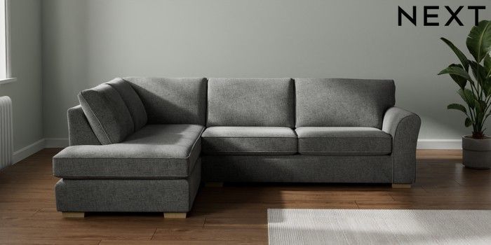 7.2.10 Michigan II Large Corner Chaise - Left Hand Chunky Chenille Dark Grey Slim Block - Light | Made Click here to use our website with more accessibility support, for example screen readers