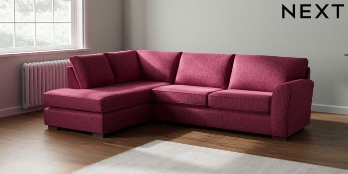7.2.10 Michigan II Large Corner Chaise - Left Hand Cotswold Chenille Dark Raspberry Pink Slim Block - Mid | Made Click here to use our website with more accessibility support, for example screen readers