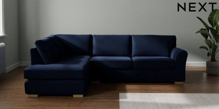 7.2.10 Michigan II Large Corner Chaise - Left Hand Luxe Chenille Navy Blue Slim Block - Light | Made Click here to use our website with more accessibility support, for example screen readers