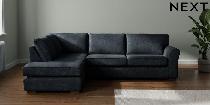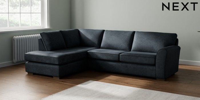 7.2.10 Michigan II Large Corner Chaise - Left Hand Plush Chenille Slate Blue Slim Block - Mid | Made Click here to use our website with more accessibility support, for example screen readers