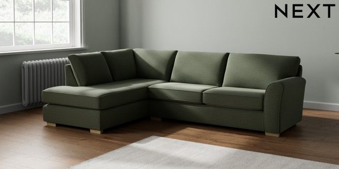 7.2.10 Michigan II Large Corner Chaise - Left Hand Relaxed Linen Look Dark Green Slim Block - Light | Made Click here to use our website with more accessibility support, for example screen readers