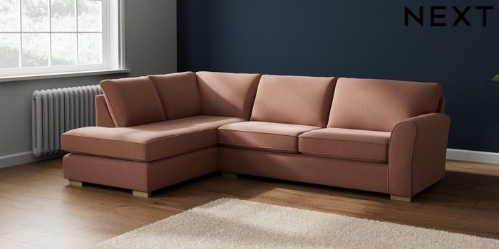 7.2.10 Michigan II Large Corner Chaise - Left Hand Relaxed Linen Look Light Rust Brown Slim Block - Light | Made Click here to use our website with more accessibility support, for example screen readers