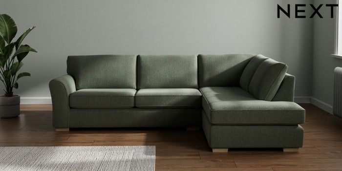 7.2.10 Michigan II Large Corner Chaise - Right Hand Chunky Texture Mid Forest Green Slim Block - Light | Made Click here to use our website with more accessibility support, for example screen readers