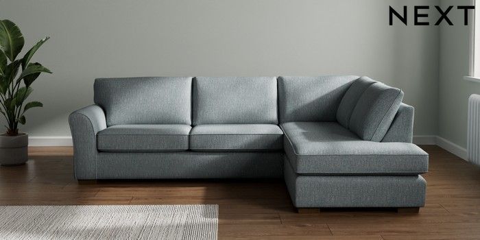 7.2.10 Michigan II Large Corner Chaise - Right Hand Chunky Weave Mid Blue Slim Block - Mid | Made Click here to use our website with more accessibility support, for example screen readers