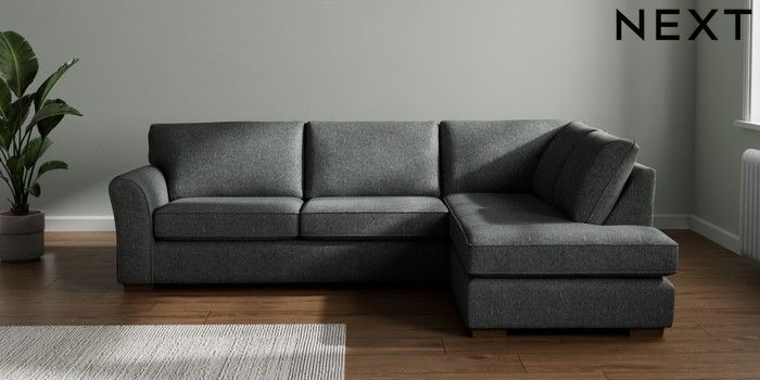 7.2.10 Michigan II Large Corner Chaise - Right Hand Cotswold Chenille Dark Grey Slim Block - Mid | Made Click here to use our website with more accessibility support, for example screen readers