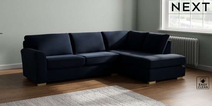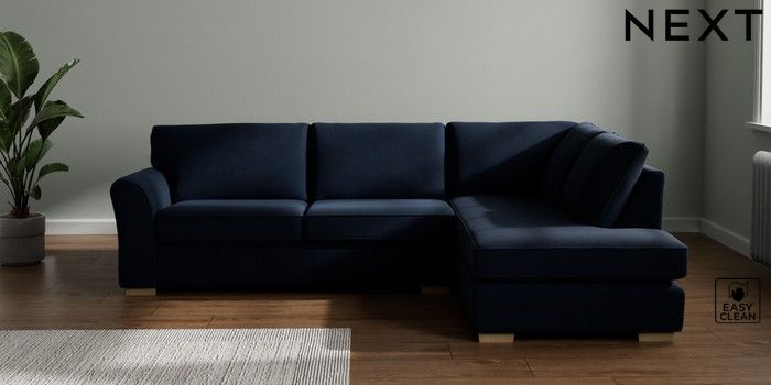 7.2.10 Michigan II Large Corner Chaise - Right Hand Fine Chenille Easy Clean Dark Navy Blue Slim Block - Light | Made Click here to use our website with more accessibility support, for example screen readers