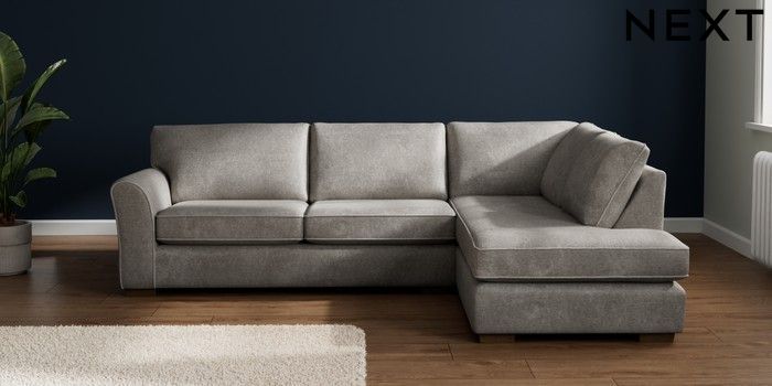 7.2.10 Michigan II Large Corner Chaise - Right Hand Plush Chenille Light Grey Slim Block - Mid | Made Click here to use our website with more accessibility support, for example screen readers